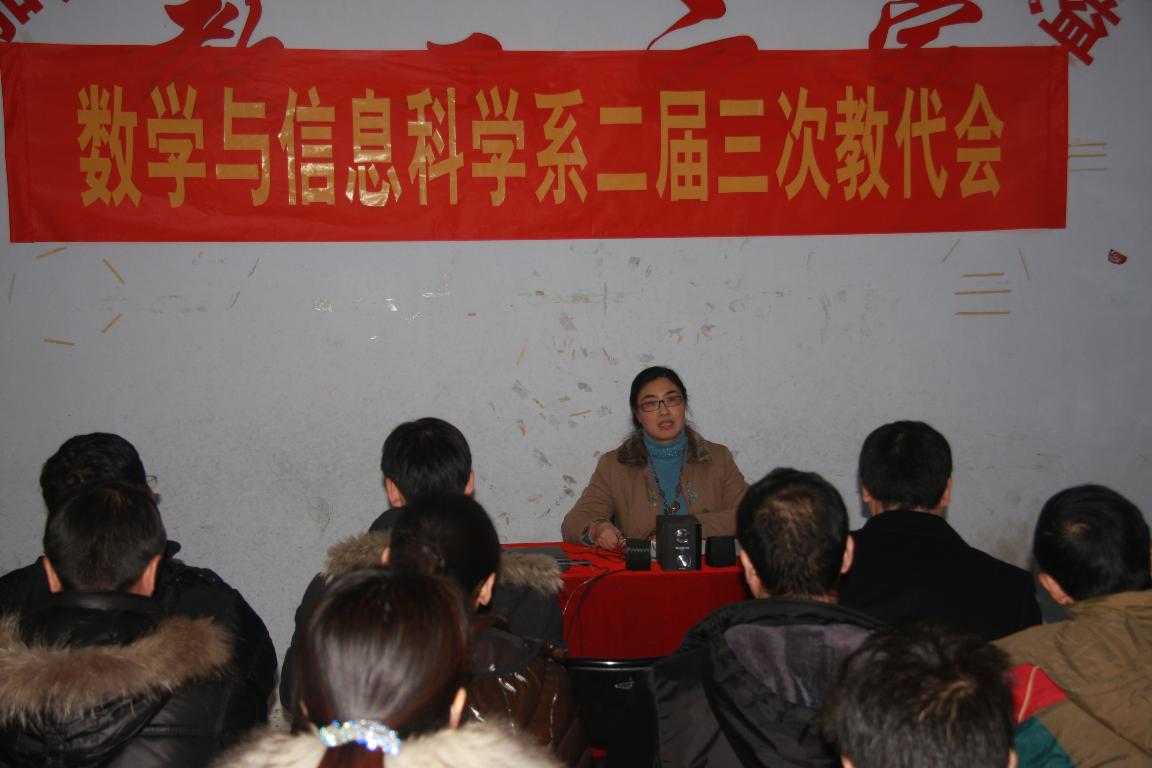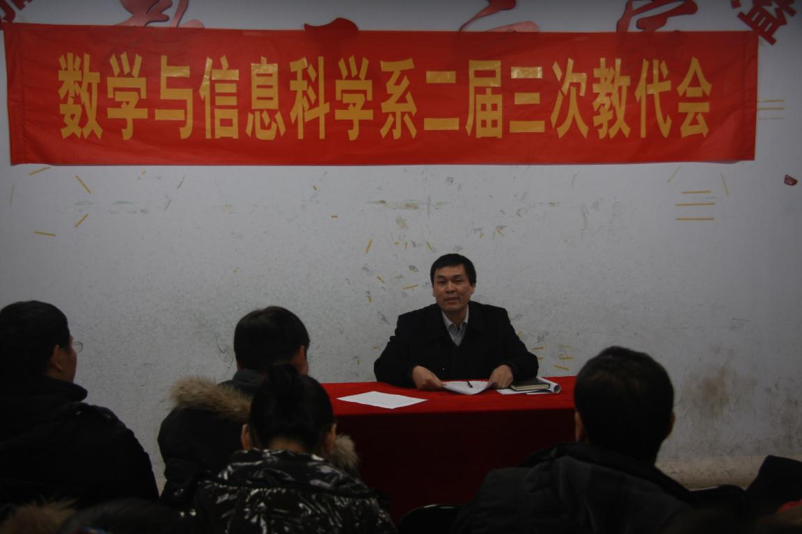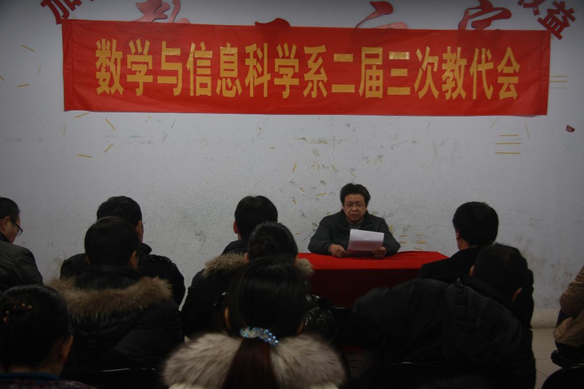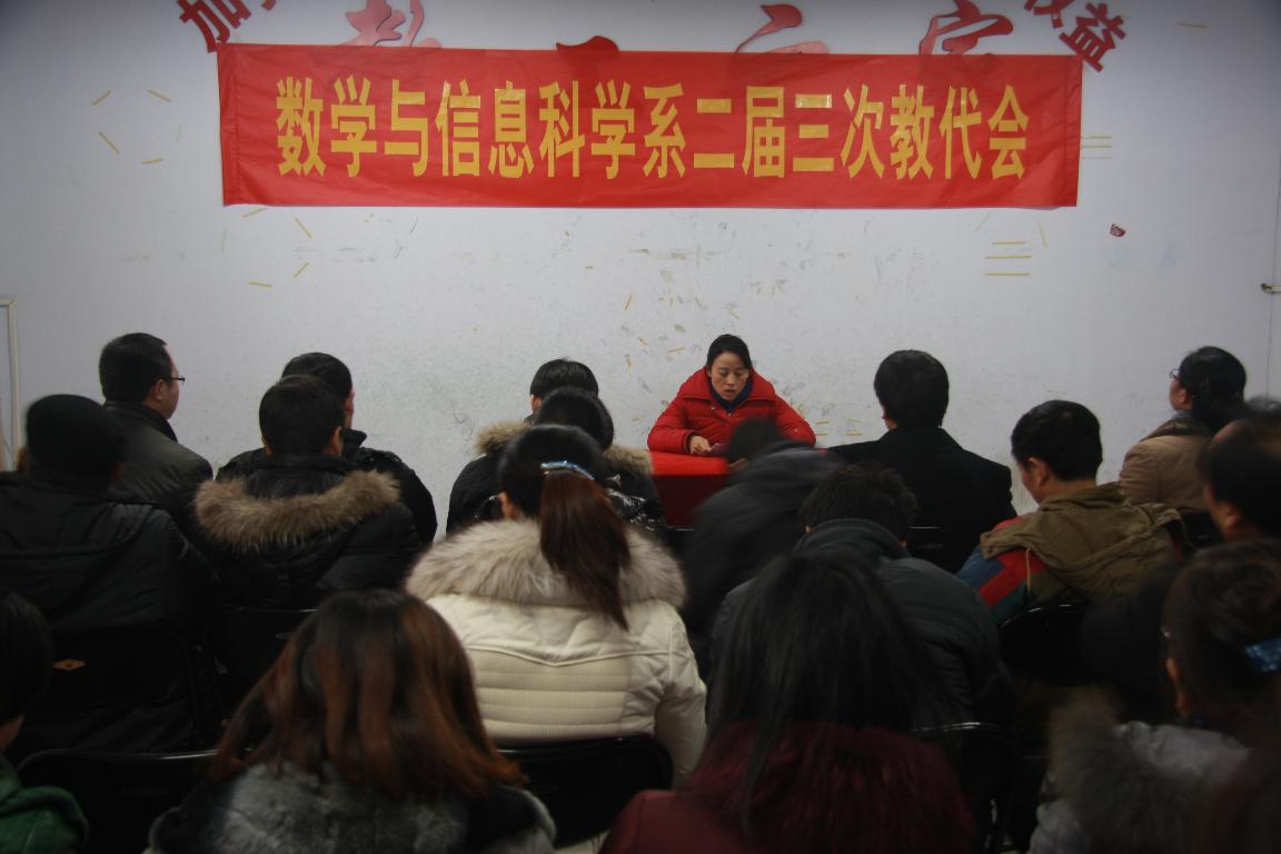 12月27日下午,数学与信息科学系二届三次教职工代表大会在东一楼216室召开,全体代表出席了会议,博士、教授应邀列席会议。