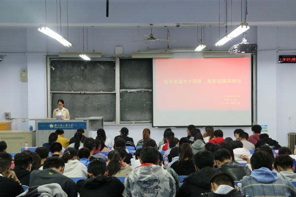 为庆祝中华人民共和国成立70周年,弘扬爱国之志,激发青年学生爱国之情,增强民族自豪感,10月31日,mx动漫 在东一楼218教室举办了“喜庆建国七十周年·我和祖国共成长”主题活动,学院2019级学生参加此次活动。