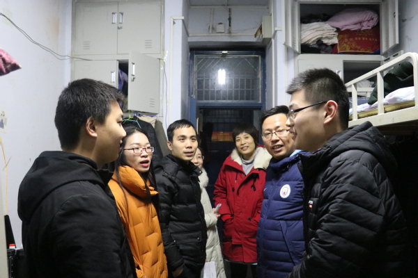 期末将至,为深入了解学生在校情况、保证学生宿舍安全,进一步排查学生期末思想动态,亲切关怀并督促学生合理规划备考,mx动漫 于12月24日晚在一区和二区学生宿舍开展全院宿舍走访活动,党总支副书记王燕翔、辅导员张智勤老师、韩笑老师以及全体班主任一行人,参与此次走访活动。