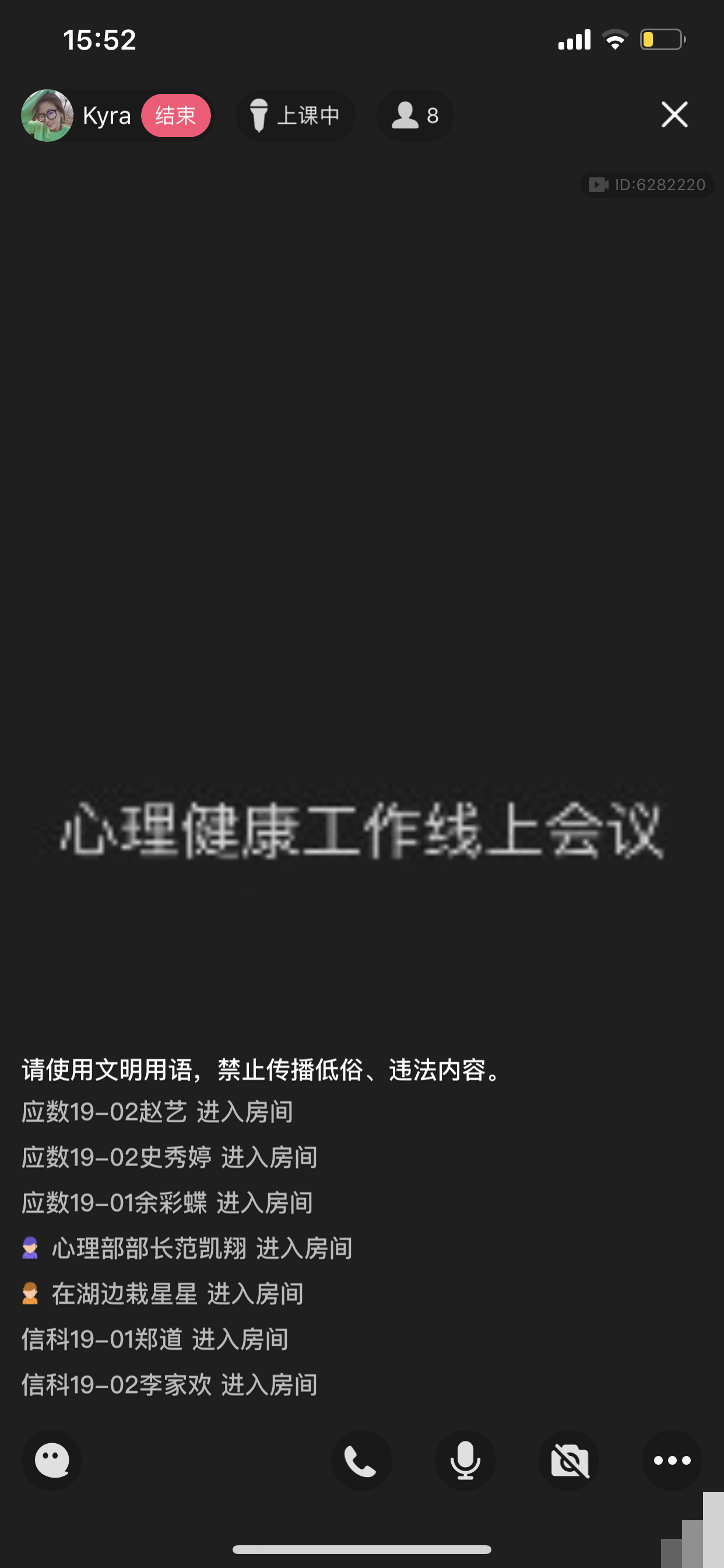 会议伊始,负责老师首先肯定了学院在疫情攻坚战初期的心理健康工作,并强调下一步工作中要持续秉承“稳人心”宗旨,对班级内学生的思想、情绪等心理状况做到知根知底、心中有数,及时辅助疏导学生心理健康问题,稳定学生情绪。接下来,为进一步缓解院内学生各类心理问题,展开下一步工作部署,要求策划活动切实做到“暖人心”,力图通过丰富多彩的心理健康教育活动来增强学生的自我调适能力。最后,负责老师与学生干部们就近期学生心理状况变化以及活动策划实施展开了积极沟通。经过线上的广泛交流,从20个项目中提取3个精选项目,“拾起瑰丽的旧时光”、“快乐传送机”和“舞动旋律,疗愈心灵”,计划于近期展开。