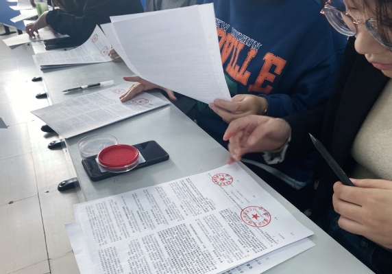 会上,韩老师首先对申请贷款学生开展励志教育、诚信感恩教育和社会责任意识教育,结合典型案例告诉同学们诚信做人、诚心立身的重要性,告诫大家一定要珍惜国家给予的资助,努力学习,用实际行动来践行当代大学生良好品德。随后,韩老师对国家助学贷款政策规定、学生在线服务系统使用注意事项、还款方式和违约后果等进行了详细讲解。最后,韩老师向贷款学生详细介绍了《国家开发银行高校助学贷款借款合同》和《助学贷款承诺书》,并对签订方法和注意事项进行详细说明。在老师的指导下,贷款学生有序填写贷款合同和承诺书并按上手印。