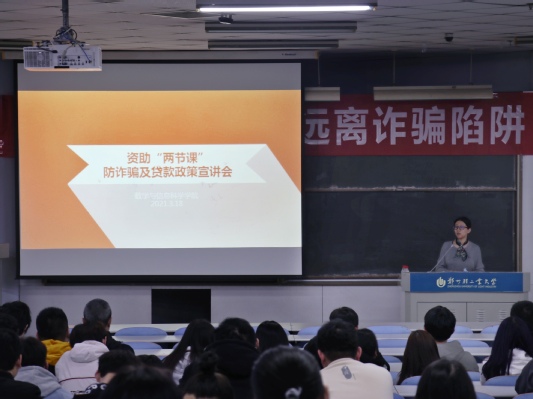 会上,韩老师首先通报了学院2020年资助工作的整体情况,并结合工作实际对同学们较为关注的国家奖助学金、国家助学贷款、勤工助学等资助政策进行详细解读。随后,结合具体案例对学生进行了防诈骗和金融风险的普及,提醒学生增强个人信息安全、网络安全和金融安全的意识,要求学生拒绝和防范五类“校园贷”,规避消费主义陷阱,合理规划金钱的使用。引导学生在校期间对学习、工作、生活做好规划,希望同学们进一步提升自身素养和行为规范,心存感恩,回馈社会。
