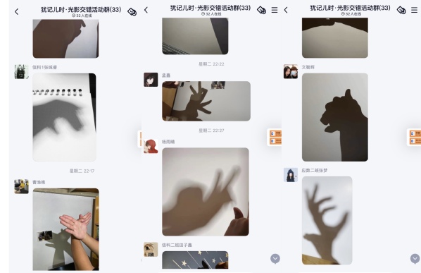 手影是民间的传统游戏,只要一枝烛、一盏灯都可以通过奇思妙想展现出活灵活现的各种形象。同学们以寝室为单位,一边摆出样式丰富的手影形象,一边拍出灵动活现的手影照片,大家互帮互助,相互协作,气氛相当活跃。随后,同学们通过线上的形式展示各自的手影作品,看似简单的手影作品融合了灯光,手势,背景等多种因素,大家积极尝试,相互交流,共同享受光影实践的乐趣。在欢声笑语,解放心理负担的同时,释放心理压力。虽然儿时快乐无法重来,但现在的每一天依旧可以五彩斑斓,大家纷纷表示要珍惜此刻,用积极、温暖与欢笑来填充自己的校园生活。