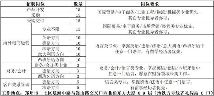 公司现诚邀全球范围内产品开发、产品采购、供应链、海外电商运营、多语种、设计、管理类优秀人才加入我们,一起为“中国制造,加油”。