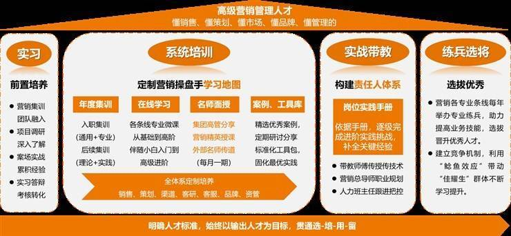 通过2年系统培养和实践,充实中基层复合型营销人才,储备一批懂销售、懂策划、懂市场、懂品牌、懂管理、符合公司文化的营销生力军,为营销体系构建持续发展的人才梯队,助力公司战略目标的达成。