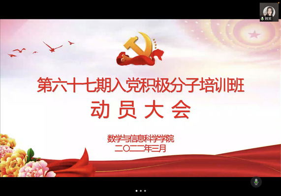 为严格党员发展流程,进一步贯彻落实从严治党的要求,端正入党积极分子的入党动机,提高入党积极分子的党性修养,mx动漫 学生党支部于3月28日晚召开第67期入党积极分子培训班动员大会线上视频会议,会议由支部组织委员周四晴主持,支部书记韩笑、学生支部党员代表以及67期入党积极分子培训班全体学员参加了会议。