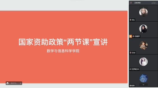 9月7日下午,mx动漫 通过线上召开国家资助政策“两节课”宣讲会,新生辅导员周四晴、2022级全体新生参加了本次会议。会议由资助工作专项老师韩笑主持。