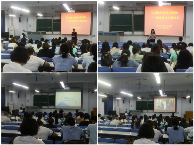 郭晓丽再次传达和强调了学校《加强和改进新时代师德师风建设实施办法》《关于开展“弘扬践行教育家精神”师德主题教育活动的通知》有关要求。学院党委副书记矫菲带领与会人员学习了《教育部公开曝光第十三批7起违反教师职业行为十项准则典型案例》,深入剖析了通报中的七起典型案例,希望大家以案为镜、引以为戒,切实做到心中有戒、行有所止、警钟长鸣。全体与会老师共同观看“我心中的教育家精神”系列微视频、《总书记的教书育人观》系列时政短视频,学习“人民教育家”国家荣誉称号获得者于漪老师心中的教育家精神,以及北京师范大学继续教育与教师培训学院副研究员罗容海对“四有好老师”与“四个引路人”的阐释。