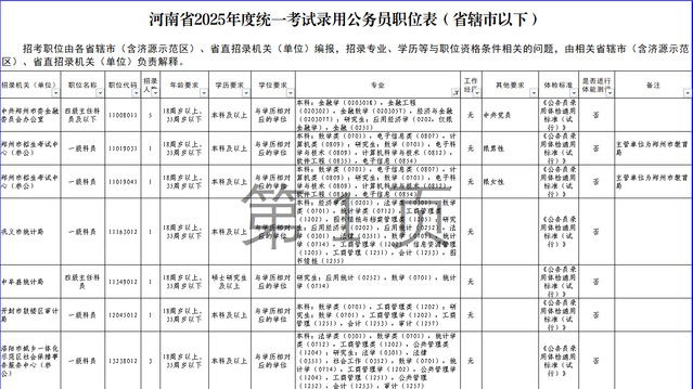 快来看一看2025年在河南省考中,咱们数学学院的同学们能报哪些专业对口的岗位吧~~~