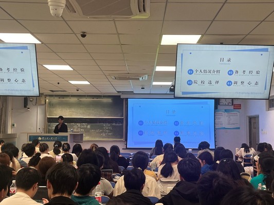 在交流互动环节,低年级同学们积极踊跃,围绕复习资料的选择、备考规划细节等问题向2025届学长学姐们咨询请教。毕业生们耐心细致地一一解答,现场气氛热烈而融洽。