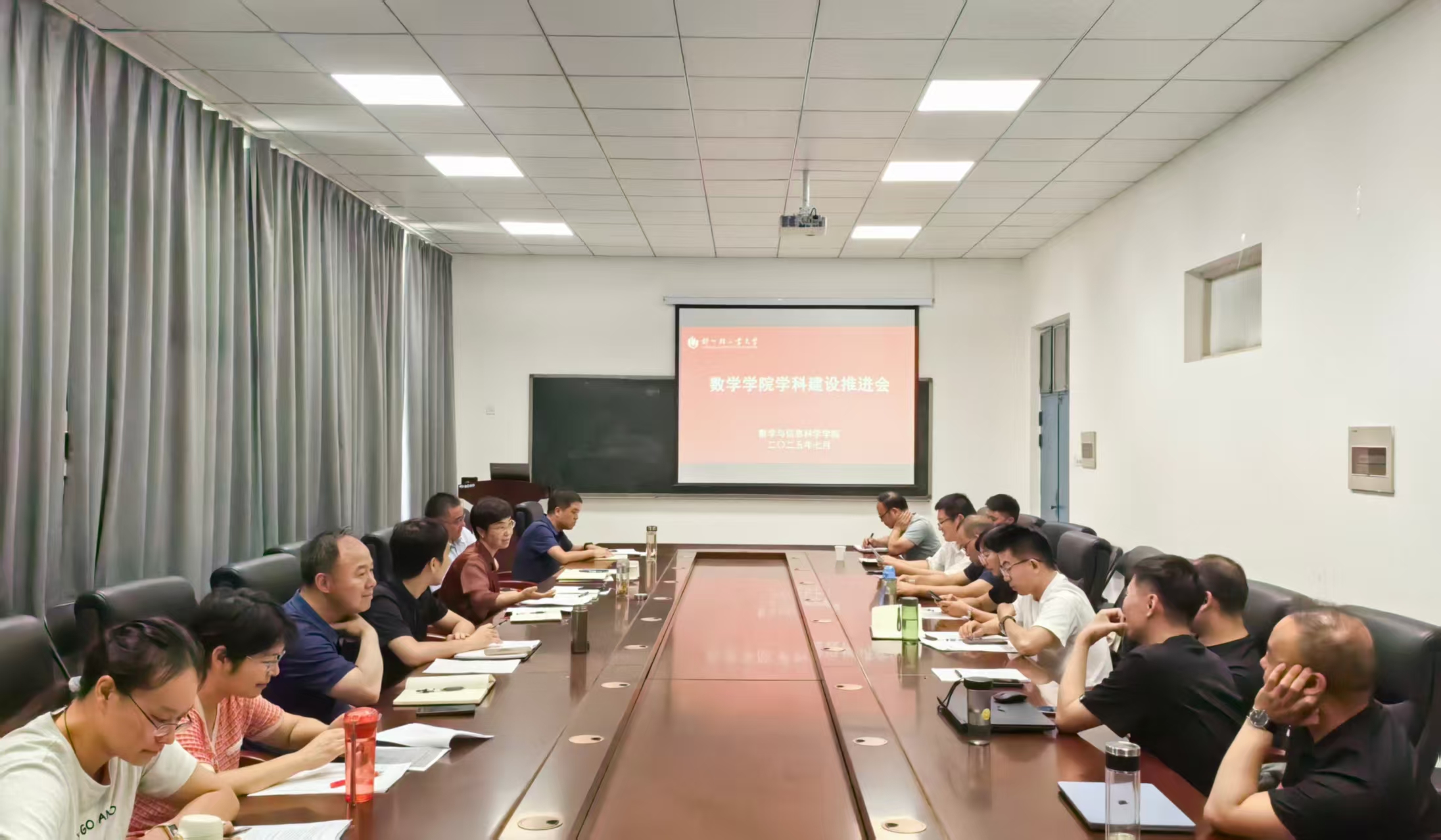 何国亮副院长首先汇报了现有学位点及拟申报学位点的建设情况和需要进一步加强建设的项目,然后通报了河南省重点学科的建设现状及2025年需要完成的建设任务,最后通报了河南省应用数学中心的考核任务与主要的评估标准。接下来大家紧紧围绕学科带头人的培育、科研项目的申报、科研奖励的参与、科技成果的转化、科研平台的申报、有组织科研的开展、科研团队的建设、对外合作交流、学院重点建设学科方向等方面进行了深入探讨,形成了一定的共识。结合研讨情况,黄士国副院长首先对大家提出的意见和建议进行了肯定,并就部分疑问进行了回复,同时结合学校相关会议精神对学院暑期及下半年重点工作进行了安排部署,督促大家持续加大科研投入,多关注新的科技增长点,研究内容要多与国家和省级战略需求相一致,不断提升科研成果的质量。