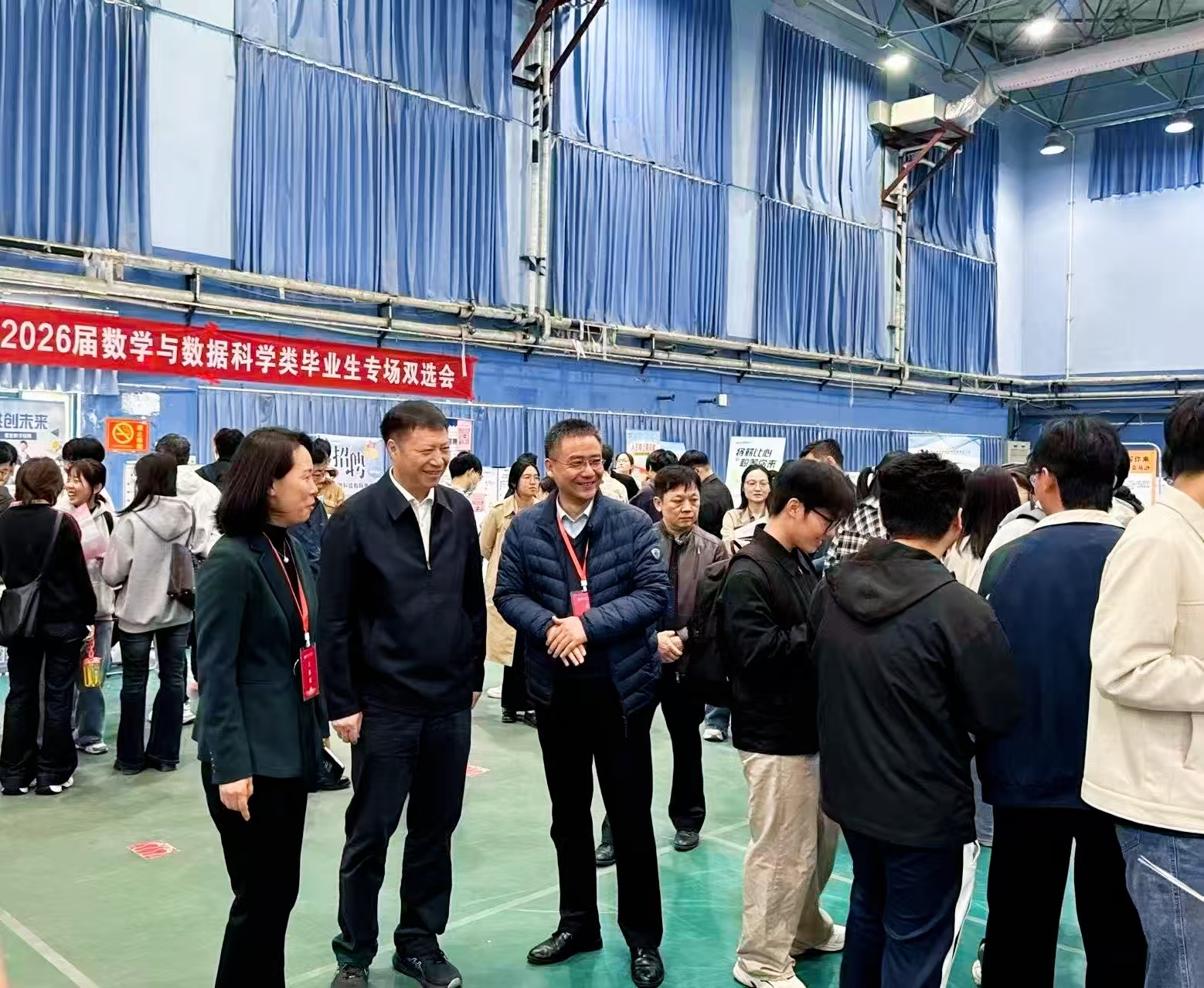 4月9日上午,学校2026届数学与数据科学类毕业生专场双选会在东风校区体育馆顺利举行。本次双选会由学校就业创业指导中心主办,mx动漫 组织承办。校党委副书记杨新宇到场调研,与用人单位和毕业生深入交流,相关职能部门及mx动漫 负责同志陪同。